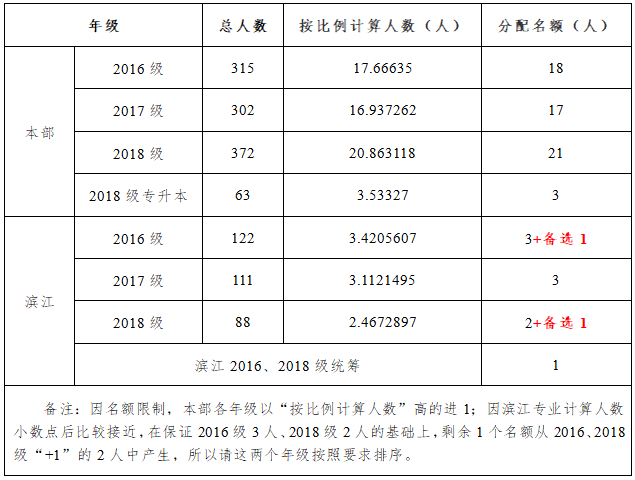 2.截止2019年8月31日,公司在校本科生本部1052人,滨江321人。公司省政府奖学金名额为:校本部59人,评奖比例约为5.608%,滨江9人,评奖比例约为2.804%。校本部和滨江学院单列名额,单独评审。