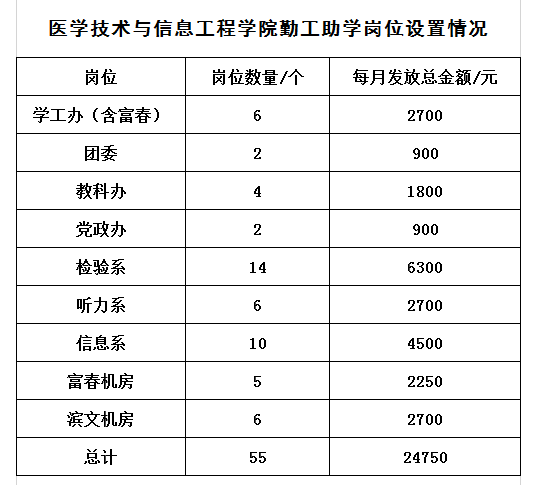 本次校级岗位设立调整根据学校统一要求,各用人单位勤工助学岗位用工人数、经费请按照如下要求执行: